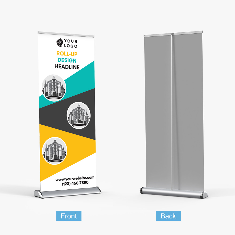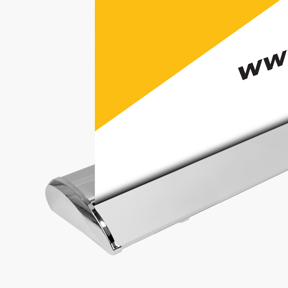 Premium retractable hardware – Chrome accents Adjustable height UV printed no curl fabric graphics Complimentary carrying case